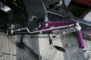 Wer eine B6/RF600 Schwinge oder eine B12/RF900 Schwinge einbauen will muß die Fußrasten nach außen versetzen, da diese sonst an der Schwinge schleifen.