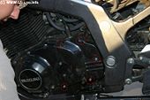 Wenn die Ritzelabdeckun unten ist, sieht man die Getriebeausgangswelle, auf der Das Ritzel sitzt.