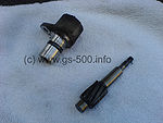 Nach Anbau eines digitalen Drehzahlmessers und Entfernen der alten Drehzahlmesserwelle sollte das entstandene Loch geschlossen werden, da sonst Öl ausläuft. Mit ein paar Teilen der GS500F ab 2004 lässt sich das sehr simpel lösen.