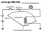 1. Ein "An/Aus"-Sensor (vom Motorradausschlachter) 2. Eine 3,4W Lampe 3. Ein bischen kabel und Geschick.....