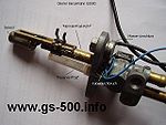 Der Sensor (der kleine Zylinder oben am Hahn im Bild) wird vorsichtig an einer geeigneten Verlängerung angelötet und am "Normalpfad-Röhrchen" (das ist das Röhrchen, das höher in den Tank hineinragt) elektrisch leitend angebracht. Das ist ein bischen eine Bastelei, allerdings sind die Sensoren üblicherweise schon auf solchen Verlängerungen aufgelötet und damit leicht anzubringen. Über diese Verbindung wird der Minuspol über das Benzinhahngehäuse aus dem Tank geführt (an einer Befestigungsschraube abgreifen...) Das Kabel für den 2. Pol wird an Sensor-Pin angelötet und durch das Normalpfadröhrchen bis kurz vor das Hahn-Ventil geführt. Von dort mittels einer schrägen Bohrung durch das Hahn-Gehäuse ins Freie. Dieser Bereich muß mit benzinfester Dichtmasse vollständig abgedichtet werden. Sprit kann dann nur noch durch den "RESERVE-Pfad" fließen (man muß also den "Normal-Pfad" opfern.....) Damit kann man den Hahn wieder einsetzen und die beiden Kabel gemäß Bild 1 anschließen. Bitte: auf absolute Dichtheit der Dichtmasse im Hahn achten!!!! Es gibt hier viele Produkte am Markt - bitte nur was hochwertiges verwenden - ich werde hier keine Empfehlung für ein Produkt abgeben......