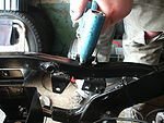 Nun messt ihr den Abstand zwischen der Lasche am Tank und dem Rahmen. Diesen Wert braucht ihr nachher wenn Ihr die Bleche montieren sollt.