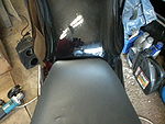 Die einfachste Lösung ist die Sitzbank einfach etwas kürzer zu schneiden und wieder schön zu beziehen, das ist eigentlich ganz einfach. Ihr müsst zuerst die Tackernadeln bis zur Mitte der Sitzbank entfernen um den Schaumstoff und den Bezug so weit weg zu bekommen das er sich nach hinten klappen lässt. Vorsicht, der Schaumstoff bricht sehr leicht wenn Ihr ihn zu eng knickt.