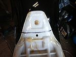 Ich werde ein Blech an die Sitzbank anpassen welches sich um den Tank legt und dieses dann einfach mit der Sitzbank neu beziehen.