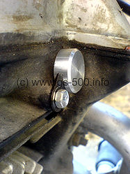 Nach Anbau eines digitalen Drehzahlmessers und Entfernen der alten Drehzahlmesserwelle sollte das entstandene Loch geschlossen werden, da sonst Öl ausläuft. Mit ein paar Teilen der GS500F ab 2004 lässt sich das sehr simpel lösen.