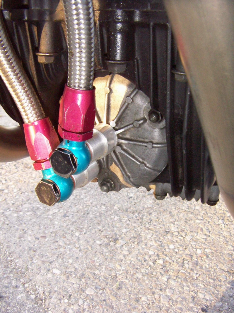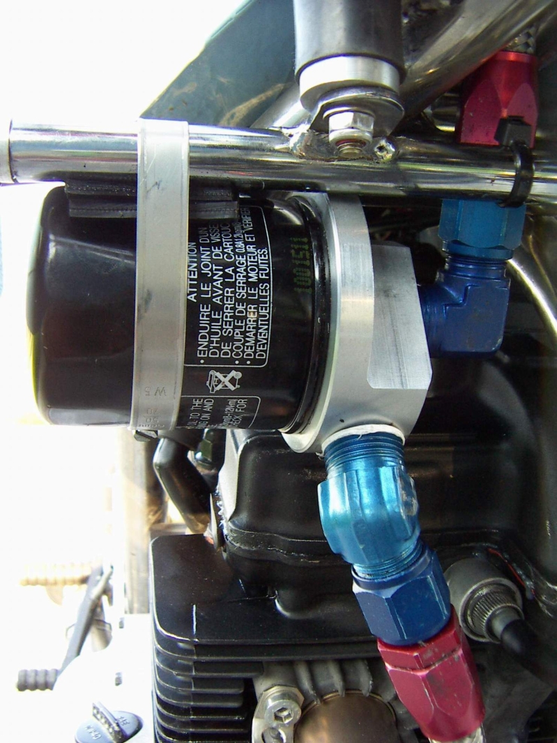 Hier wird anstelle des orginalen Deckels ein Eigenbau eingesetzt der gleichzeitig die Aufnahme des Ölfilters ist und weiterhin die Verbindung zum Ölkühler herstellt.