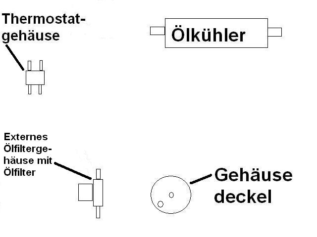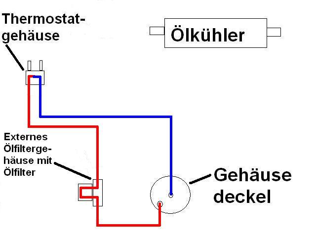 Von Vorteil wäre auch ein Thermostatgehäuse, welches erst beim erreichen der Betriebstemperatur den Ölfluß über den Kühler freigibt, bzw. diesen dann wärend der Fahrt auch regelt.