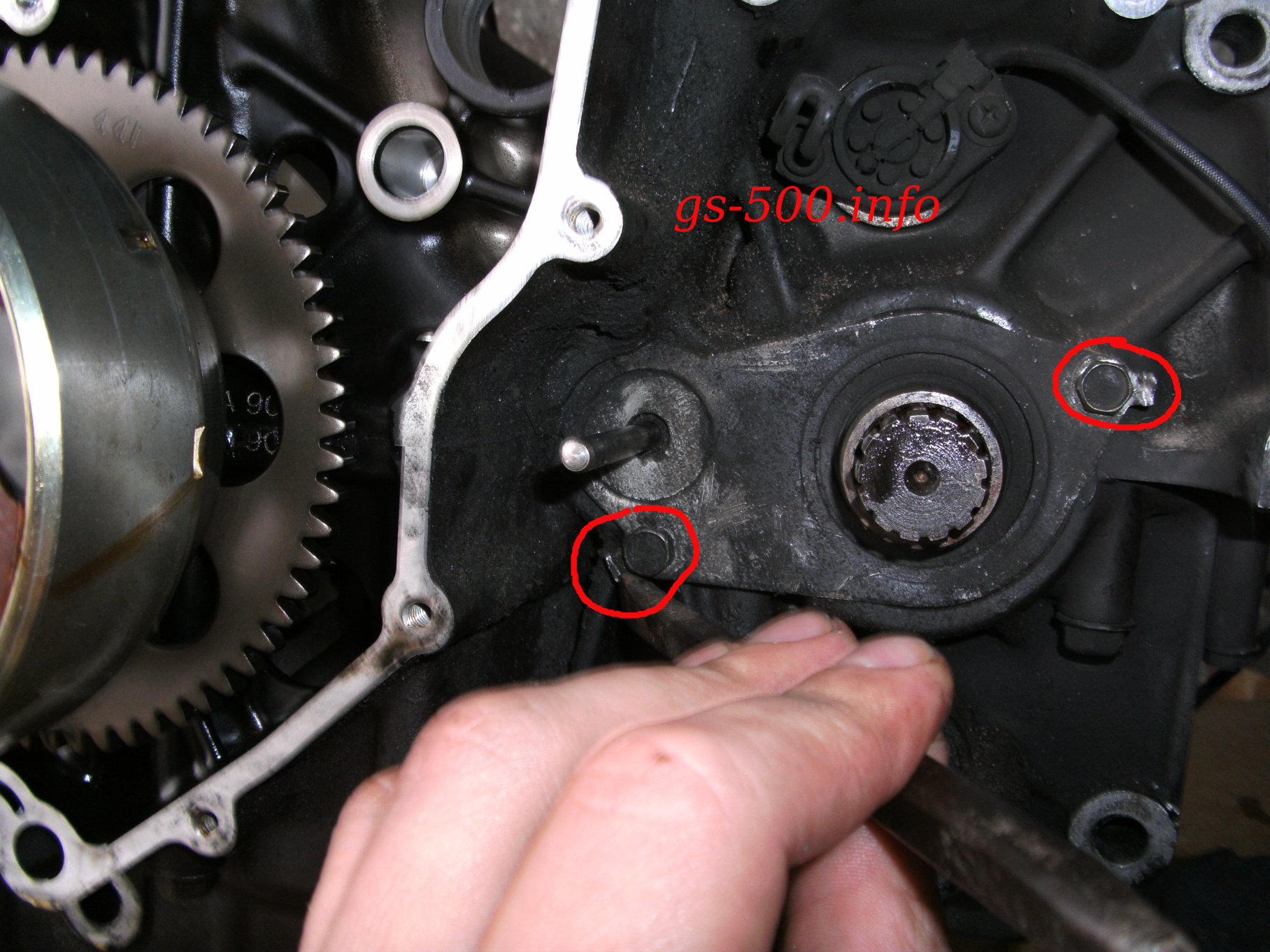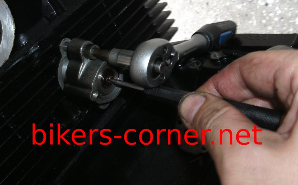 *den Bolzen des Anlasserzwischenrades heraus ziehen. Anschließend das Anlasserzwischenrad entfernen
