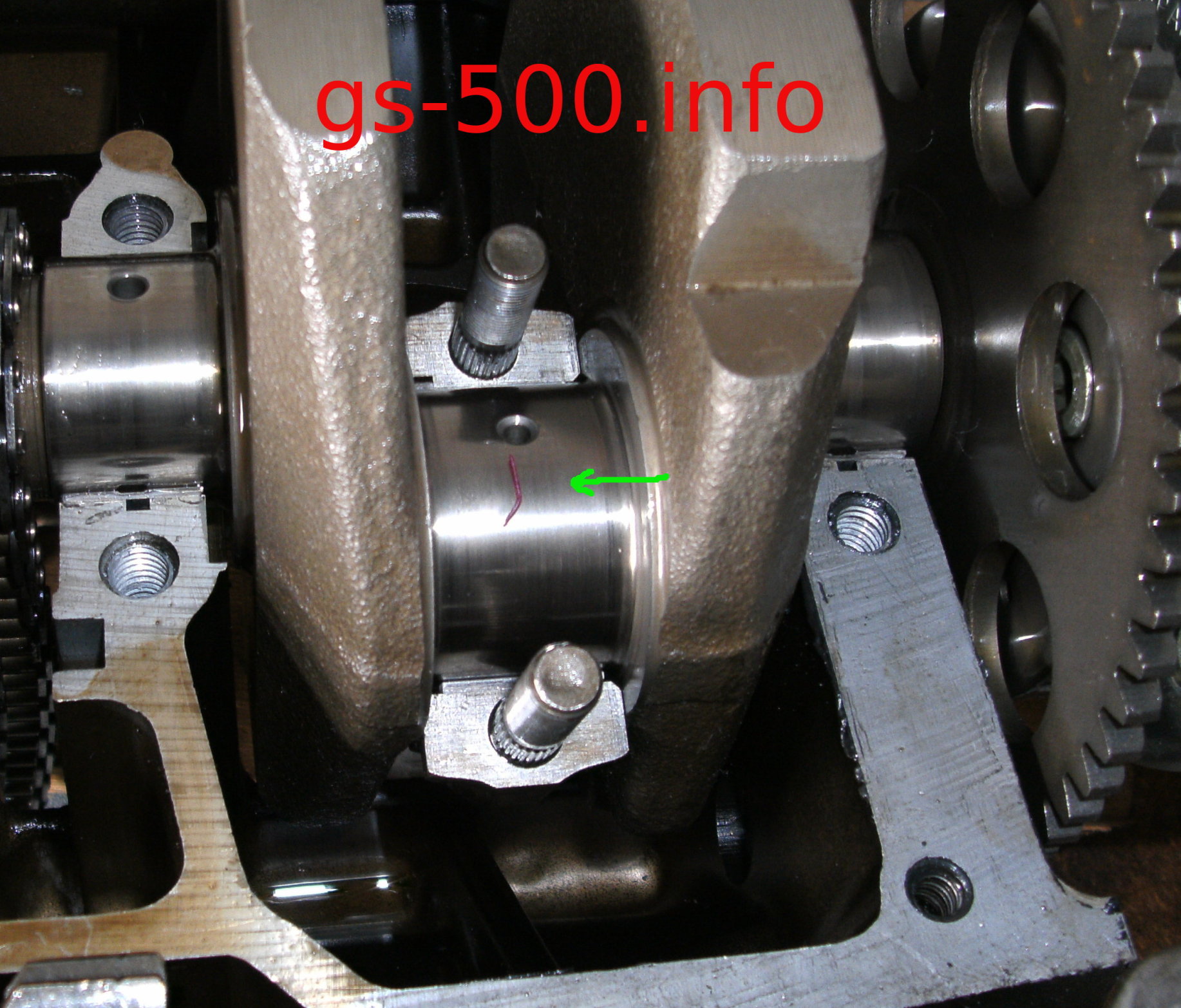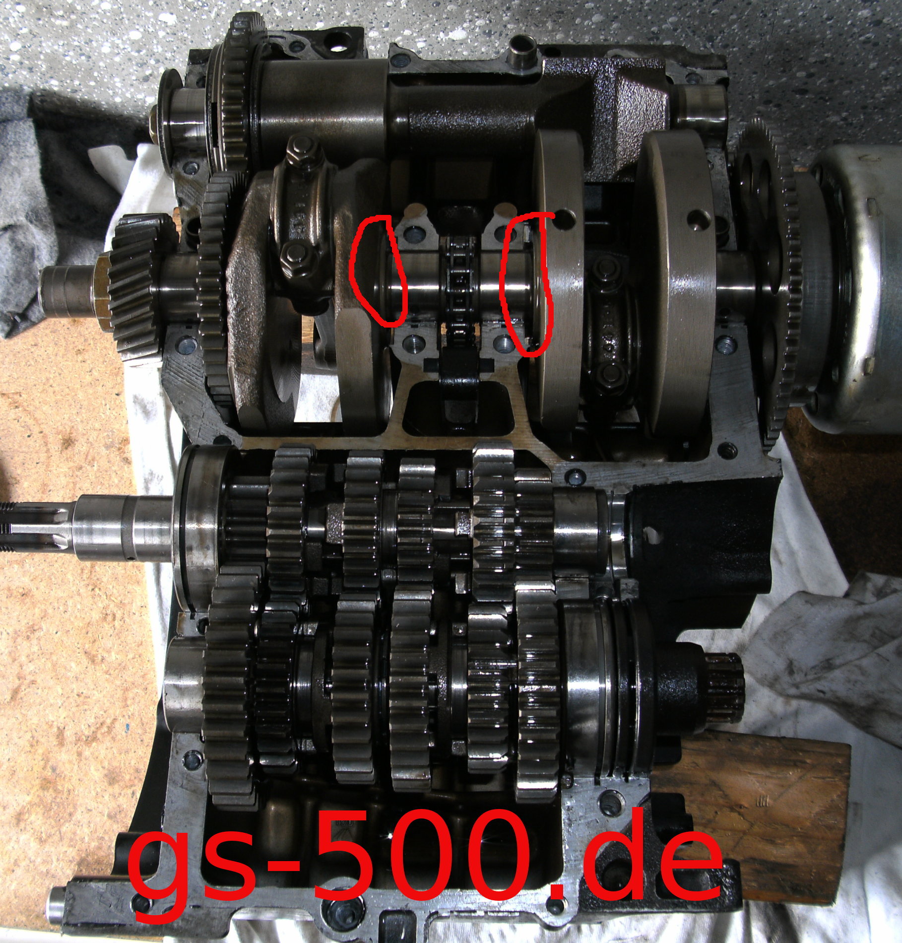 Die Kurbelwellenpasslager sind auf dem Bild eingekreist. Wo sich die Steuerschiene befindet, ist selbsterklärend.