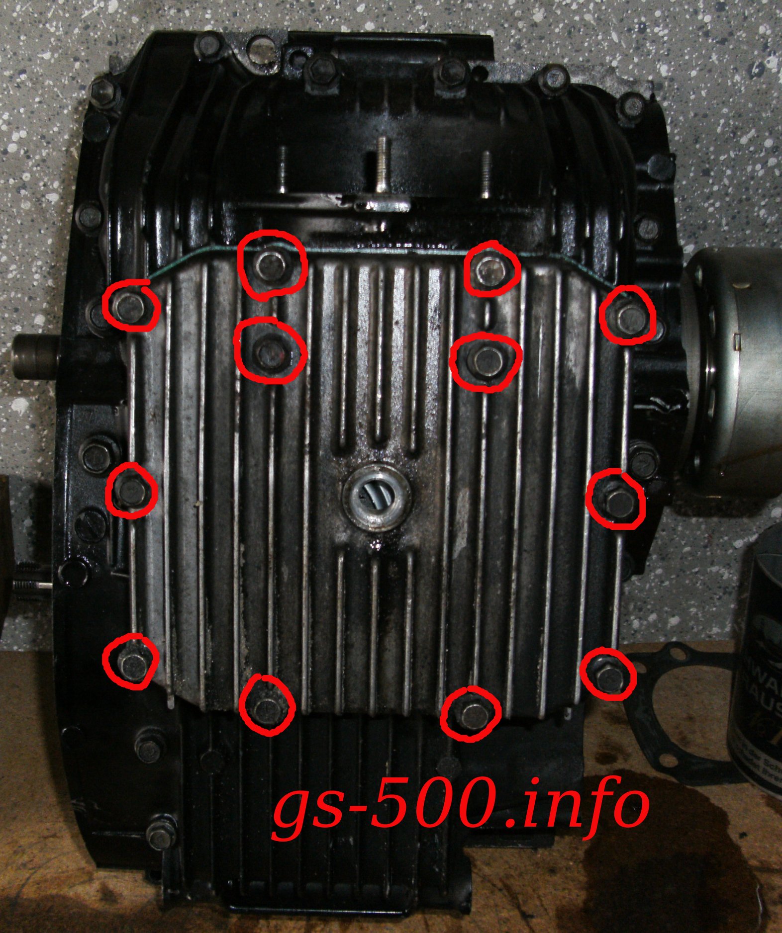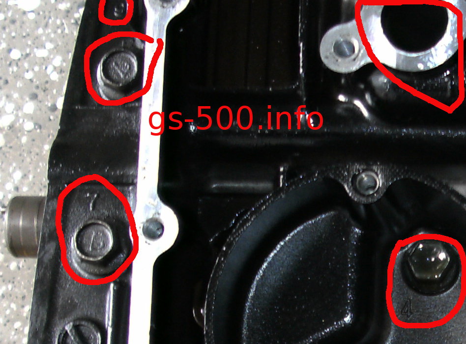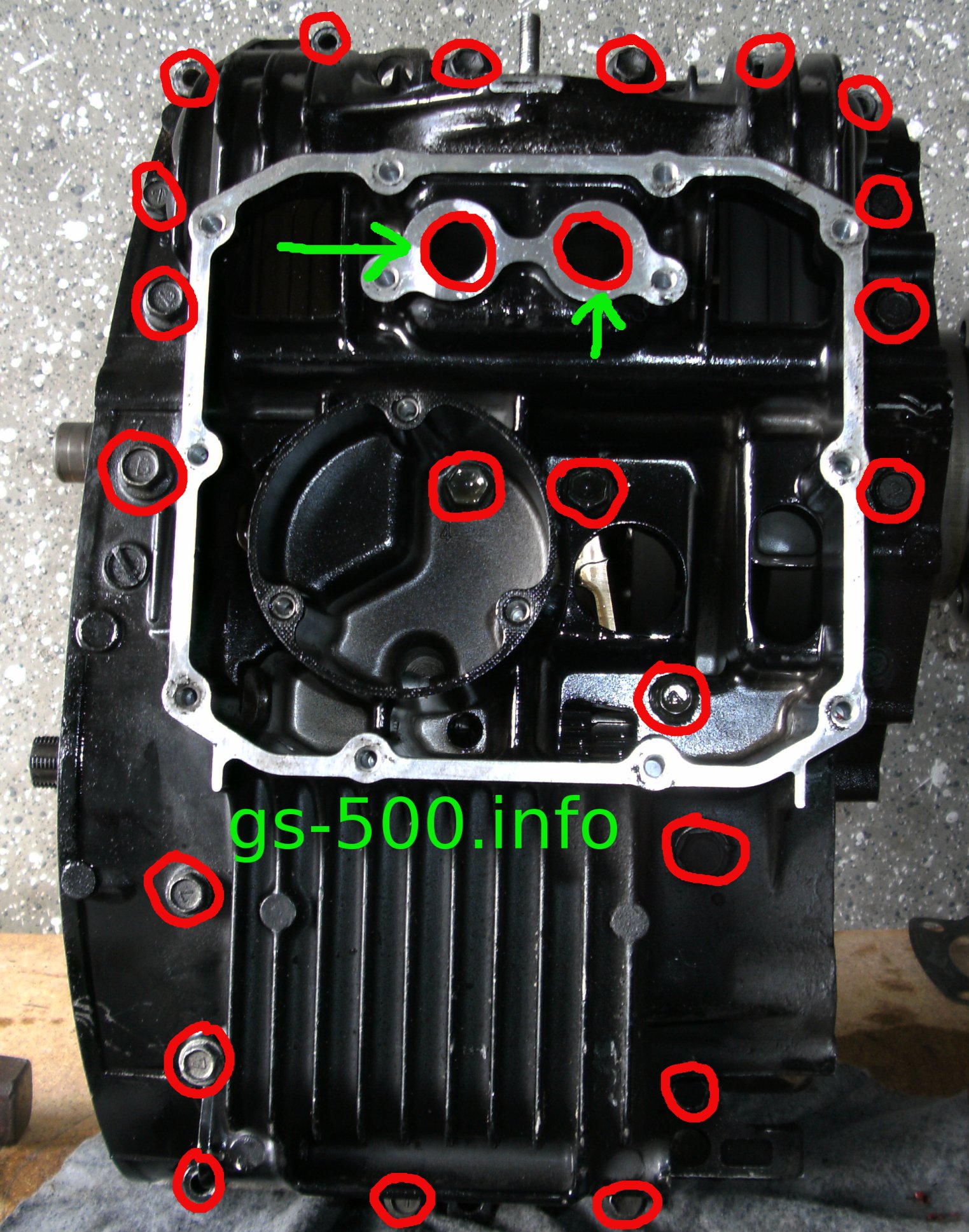 '''Anmerkung''': Die Stehbolzen nur ausdrehen, wenn es wegen Gehäusewechsel unbedingt notwendig ist. Die unteren Enden der inneren Stehbolzen befinden sich nicht im Motorinneren und gammeln im Laufe der Jahre fest.