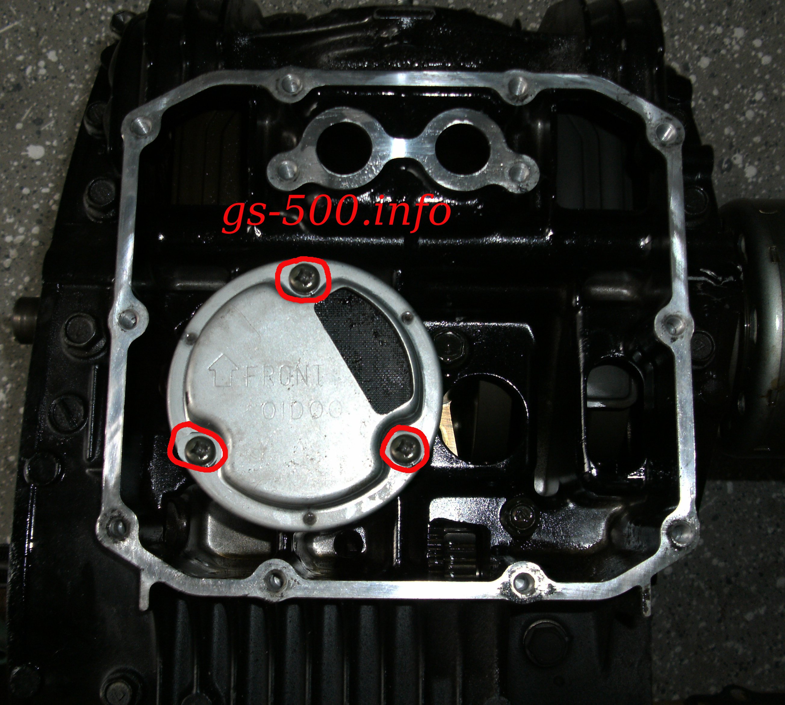 *drei Schrauben des Ölsumpfsiebes entfernen. '''Anmerkung''': diese Schrauben sitzen sehr fest da sie mit Sicherungslack eingeklebt sind und sehr weich da es sich um einfache Blechschauben handelt.