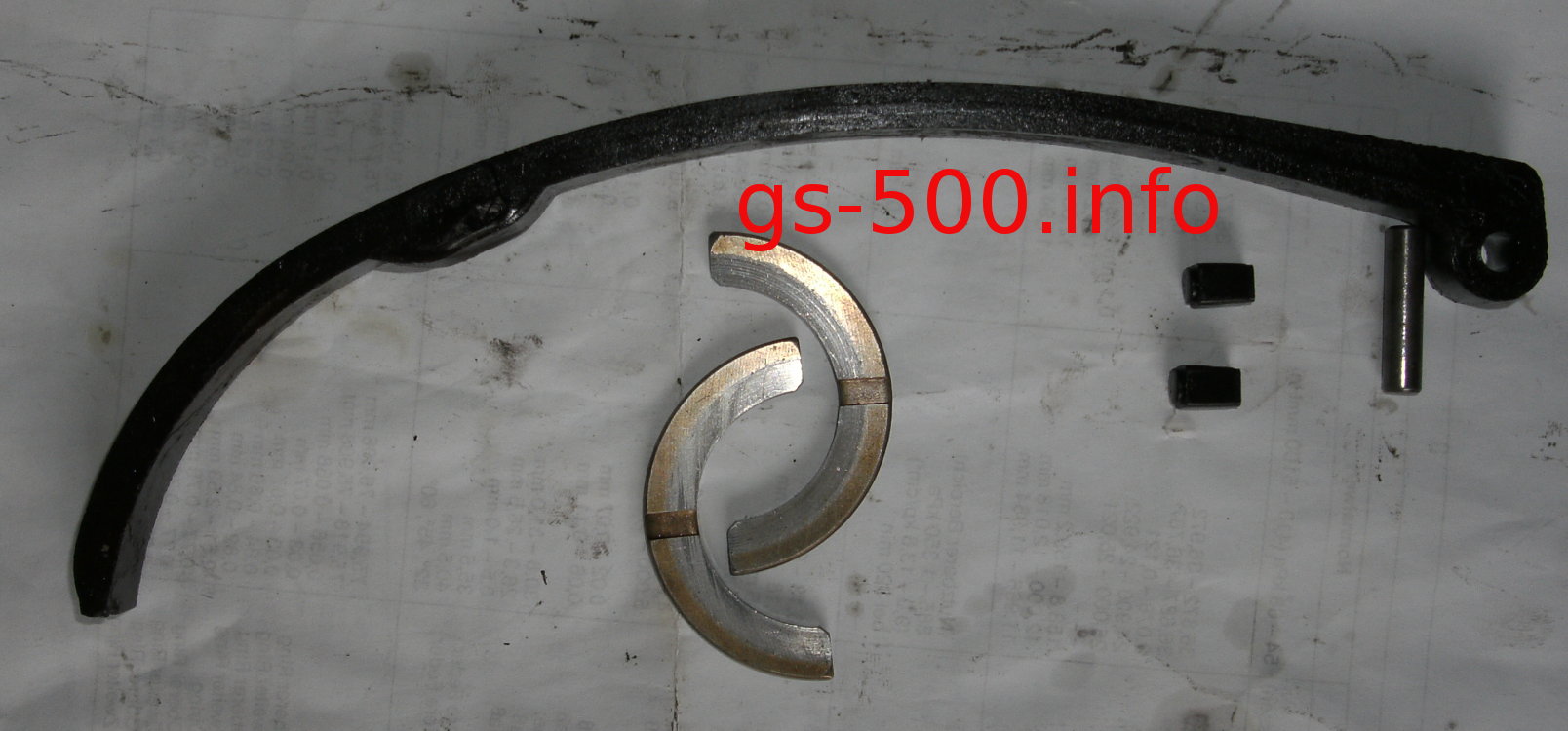 Auf dem Bild sieht man die Gummipuffer der Steuerschiene, die beiden Kurbelwellenpasslager, den Steuerkettenschienenbolzen sowie die Schiene selbst. Die Kleinteile an einen sicheren Ort verwahren.