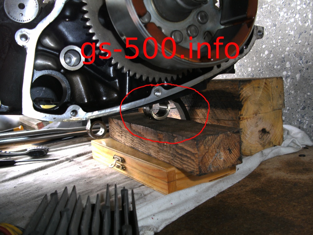 *2 Lagen Holzklötze auf das Kurbelwellengehäuse legen, die Hände müssen frei sein