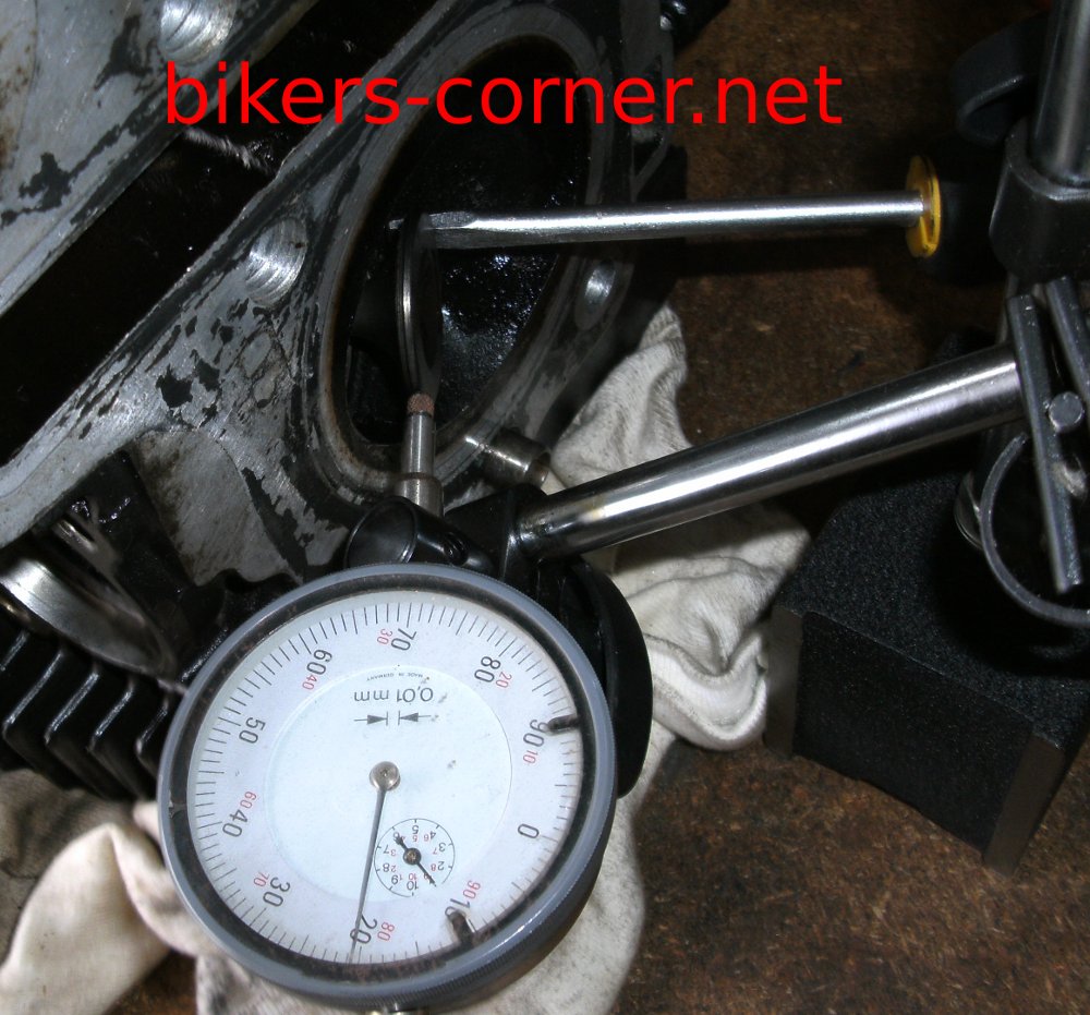 Nun kann die Kurbelwelle gefahrlos durchgedreht werden. Die korrekte Position der Kurbelwelle zur Auslassnockenwelle und Einlass- zur Auslasswelle wie oben prüfen.