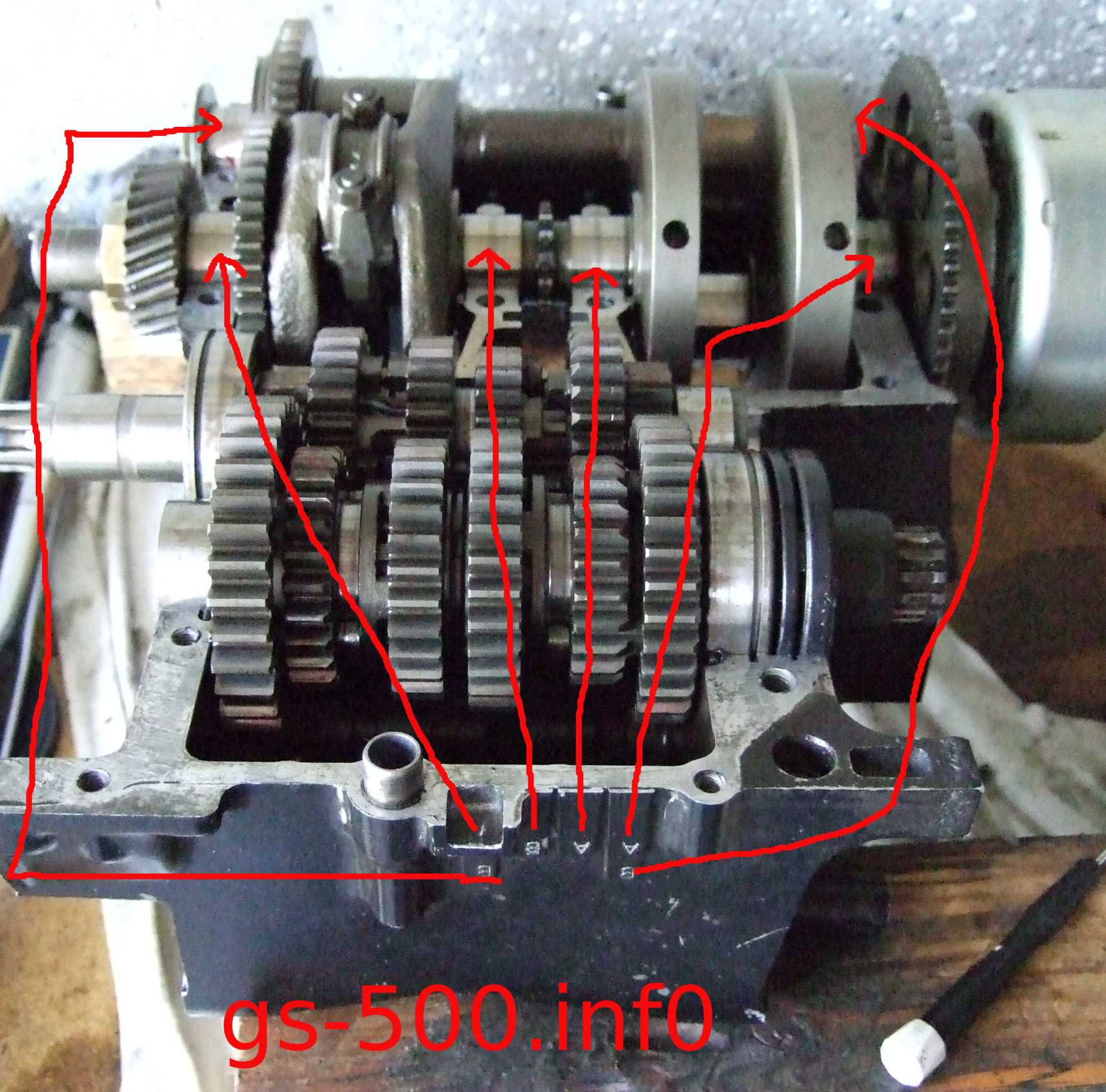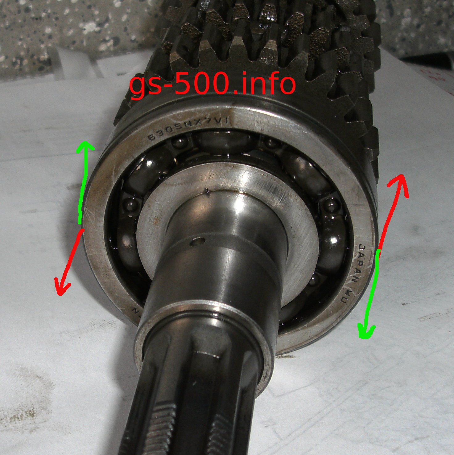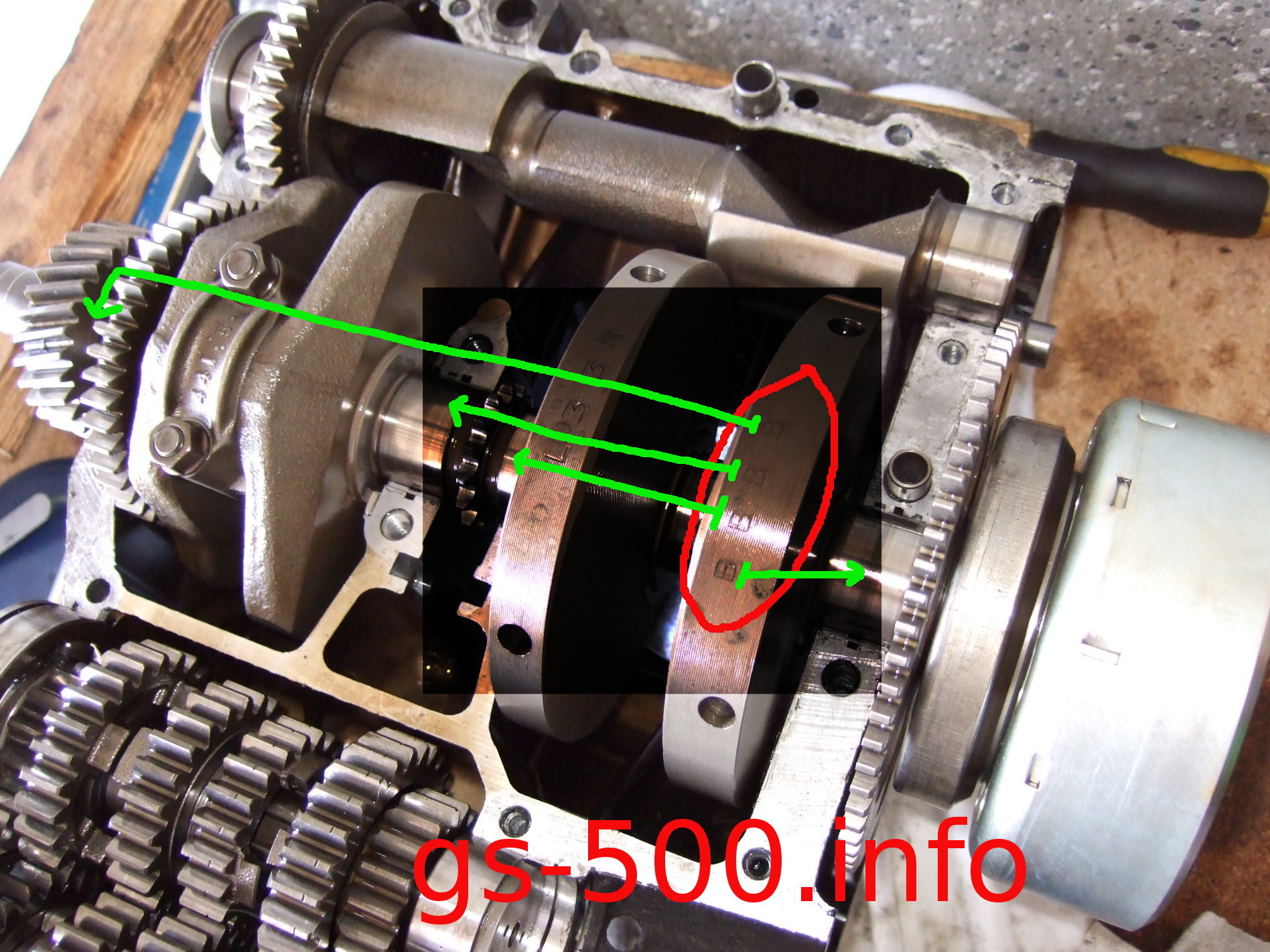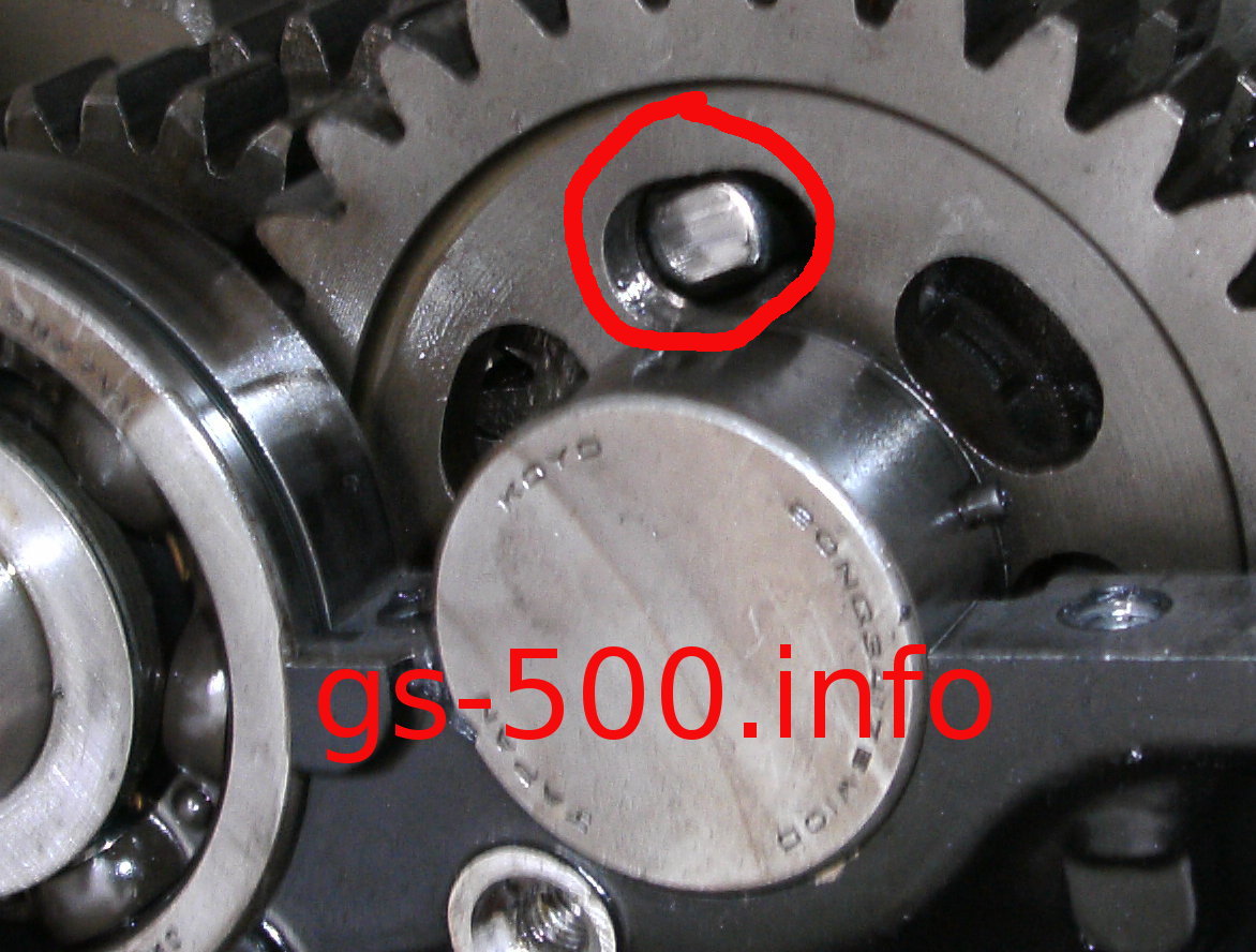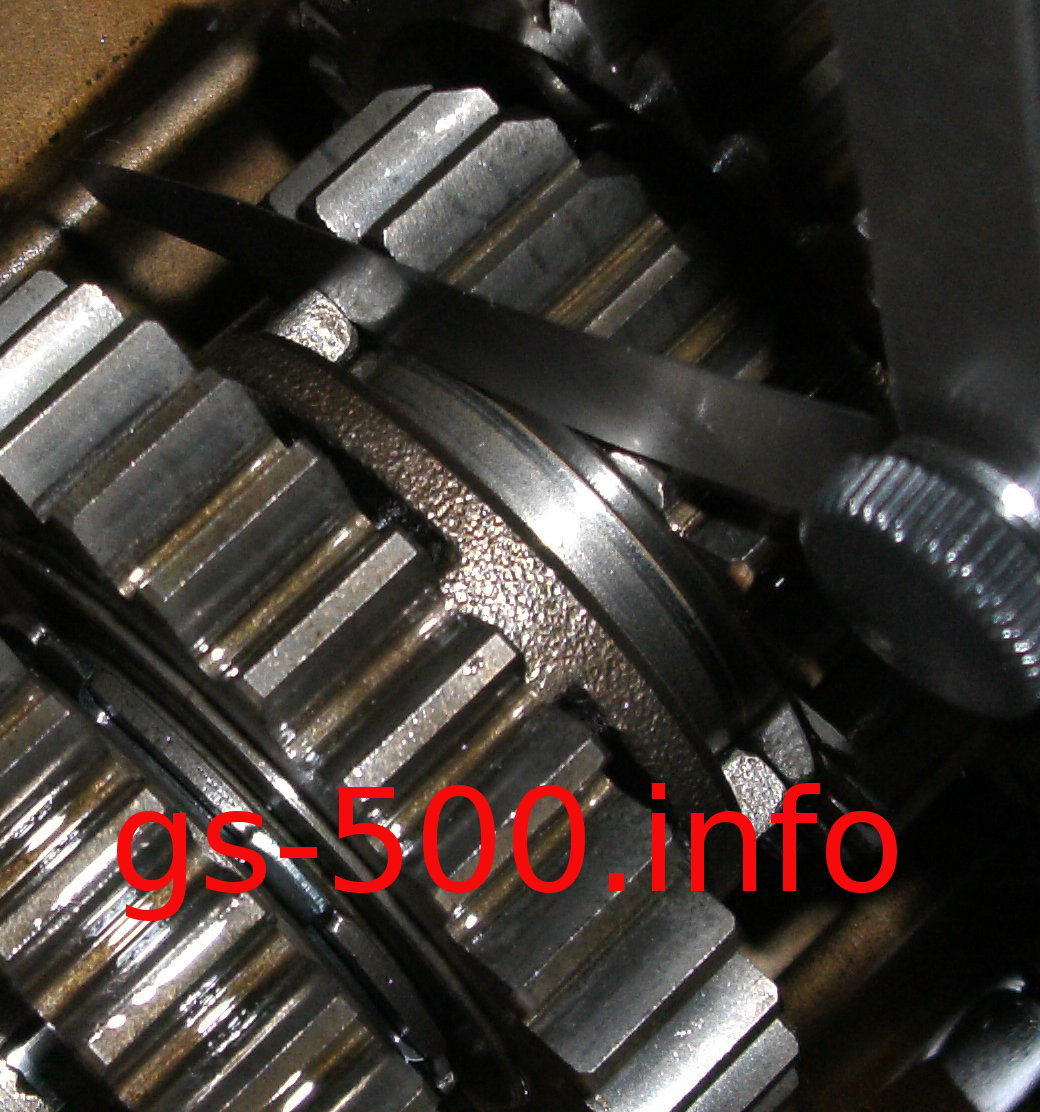 <span style="color:white; background-color:red;"> Vorsicht</span>: Werden die Wellen zerlegt, müssen die Seegerringe durch Neuteile ersetzt werden. Die alten Ringe dürfen nicht weiter benutzt werden, sie sind nur für die einmalige Montage gedacht! Der Bruch eines Rings führt bei leistungsstarken Motorrädern meist nur zu Zahnradsalat, bei der GS ist ein Sturz durch ein blockiertes Getriebe vorprogrammiert.