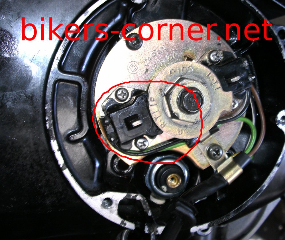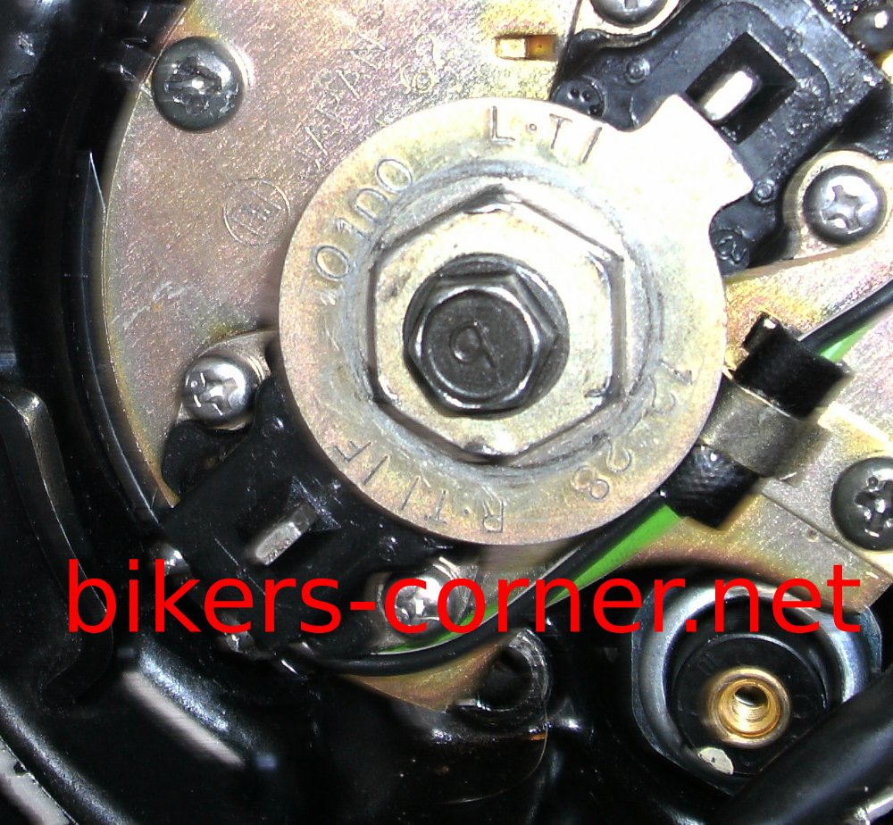 *den Zündimpulsgeberdeckel abnehmen und den Zündimpulsgeber ausbauen. Hinter ihm sitzen noch zwei Schrauben zur Befestigung des Kupplungsdeckels. Der Impulsgeber muss ausgebaut werden, um diese lösen zu können. Erst danach die äußeren Schrauben des Kupplungsdeckels entfernen und den Kupplungsdeckel abnehmen.
