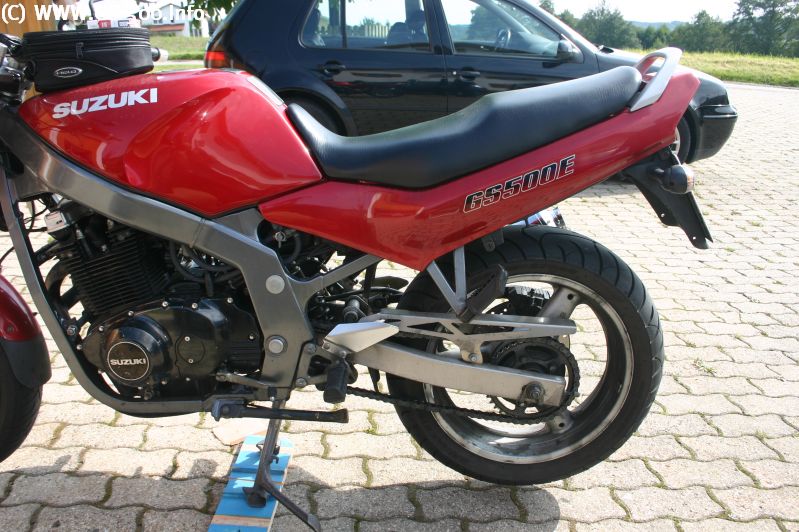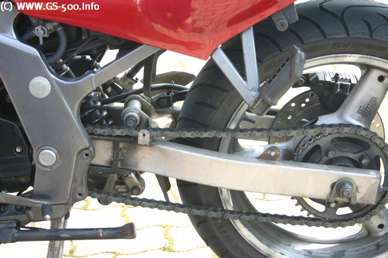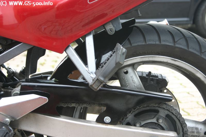 Ahora se monta la cubierta en una GS con [rin modificado de una SV 650](/sv-650-felge-in-original-schwinge/). Aquí se instaló una llanta trasera con las medidas 160/60 Zr17.
