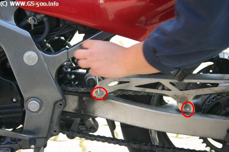Ahora metes los 2 tornillos del protector de cadena sin apretarlos mucho aun.