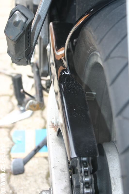 Quiénes manejan constantemente con un viejo y desgastado amortiguador de serie de la GS y mejor aún además lleva Sozius, ellos pueden tener que cortar la cubierta para evitar que choque contra el colín.