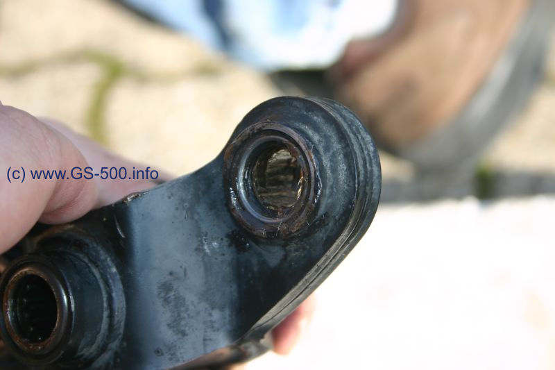 Wenn Ihr damit fertig seit, dann pinselt Ihr das restliche alte Fett aus den Lagern, steckt ruhig den Finger mal in die Lager und dreht sie ein wenig, da kommt dann noch viel mehr altes Fett zum Vorschein.(Bild 2)