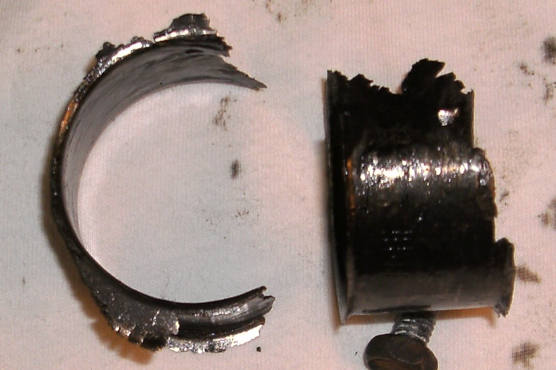Vom einer Hälfte des linken Pleuellagers wurden ca. 50% des vorhandenen Materials "abgetragen". Die zweite Hälfte war wesentlich weiter abgefressen, hier kam es schon zum Bruch. Das rechte Pleuel/Lager waren nicht zu beanstanden.