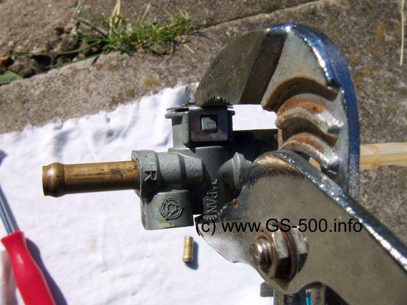 Hierfür macht es Sinn, zuerst den Benzinhahn aus dem Tank zu schrauben: