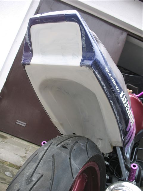 Hier die Verkleidung der Firma Race-it, sie vertreiben sowohl ein Heckteil, ein Schutzblech für hinten und eine Vollverkleidung im Design angelehnt an die GSX-R Baureihe.
