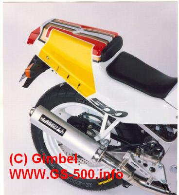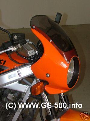 Dies Verkleidung ist von der Firma VOTH Lackierdesign hergestellt worden, sie soll Anfang der 90iger Jahre ein Renner gewesen sein. Die Typenbezeichnung ist GS 500-0T. Allerdings wird diese Verkleidung nicht mehr hergestellt.