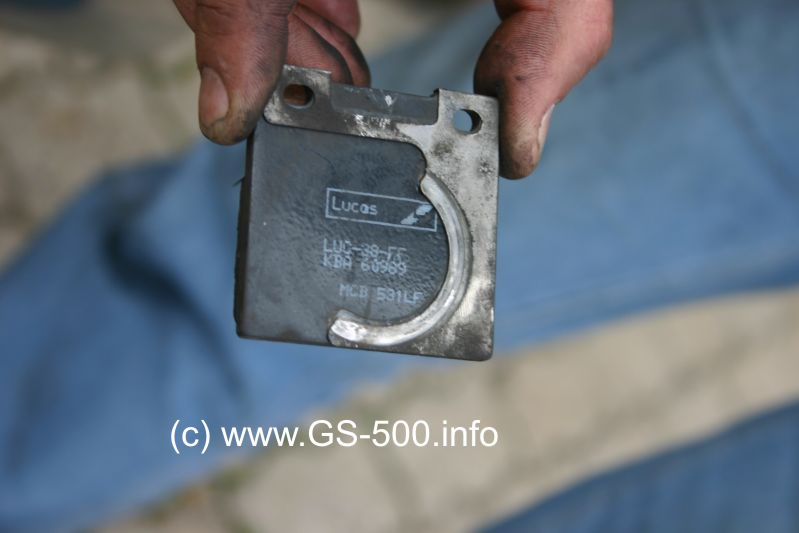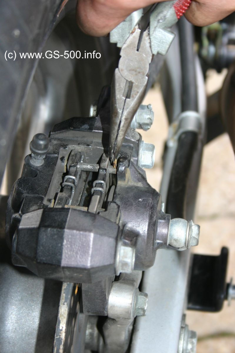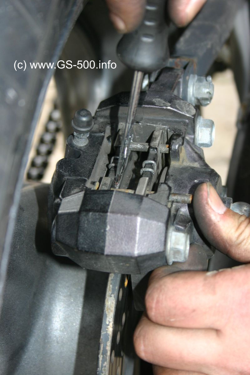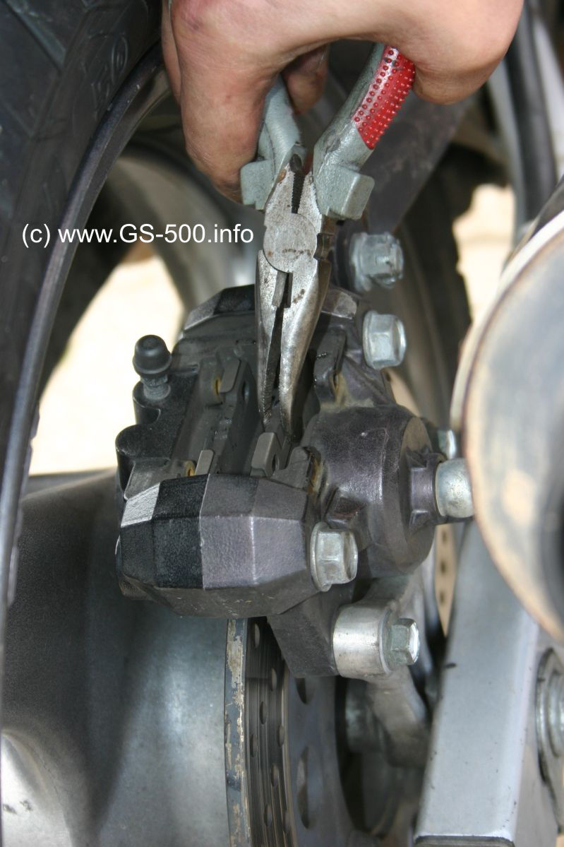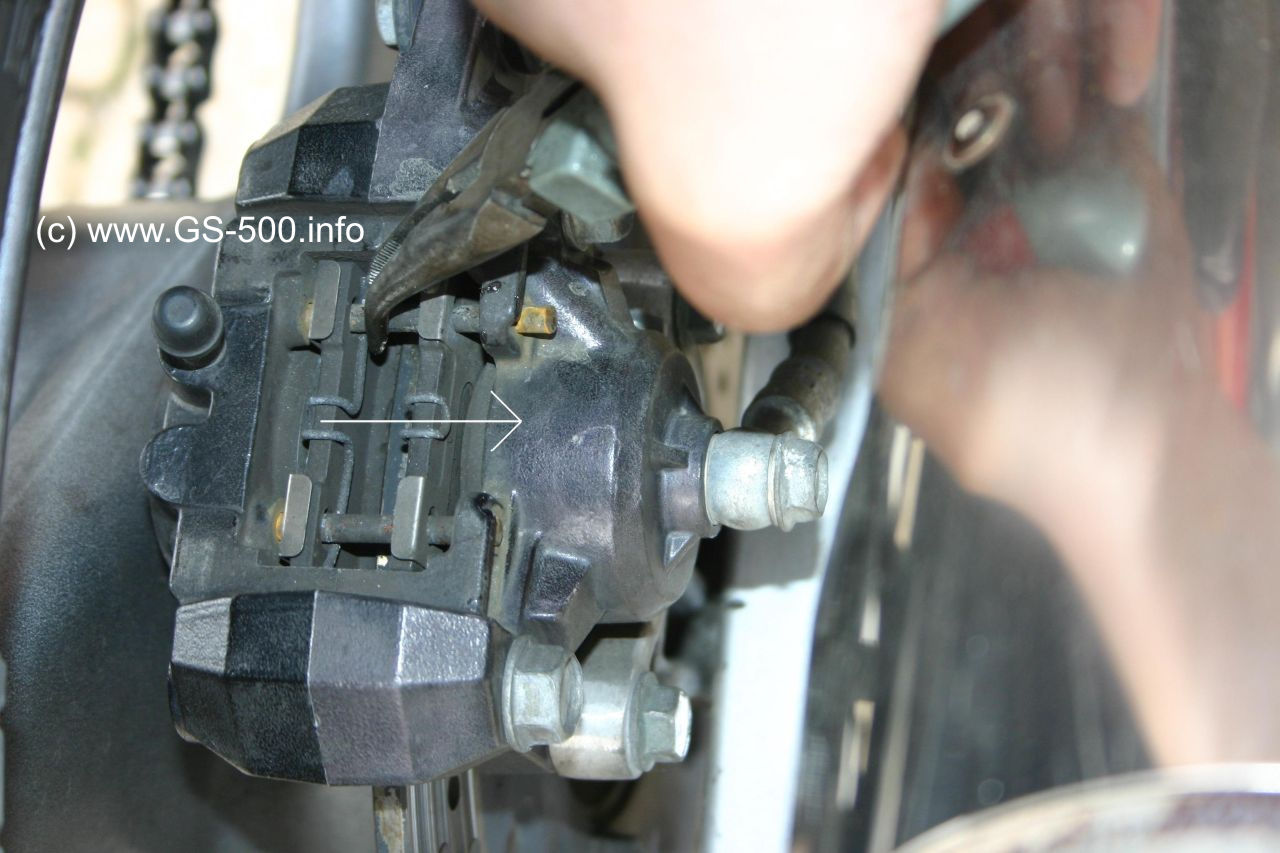 Als erstes muß die Abdeckkappe hinten auf dem Bremssattel entfernt werden.
