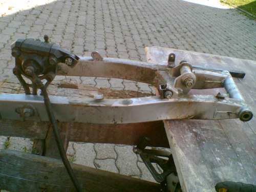 Ahora el tirante de pinza de freno trasero que necesitais si quereis montar la llanta de una SV 650 en el basculante original.