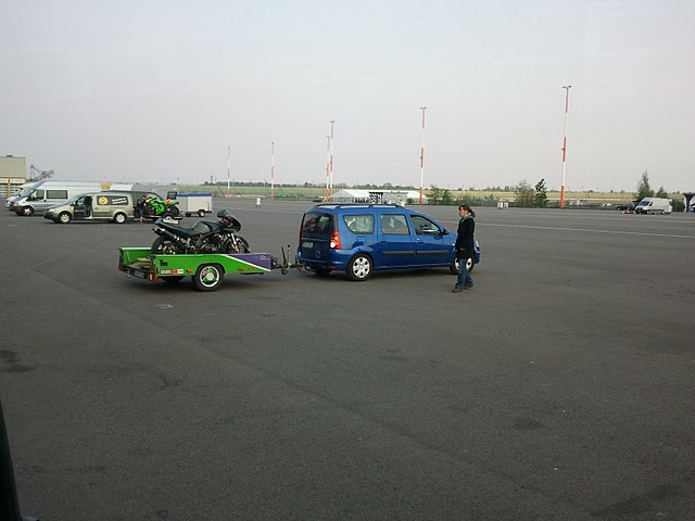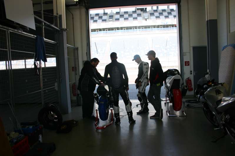 Nun ja, erst mal anmelden, die Box beziehen und das Auto und den Anhänger leer räumen. Da wir ja keine Zeit gefunden hatten die GS richtig einzustellen, mussten wir dies in der Boxengasse tun.