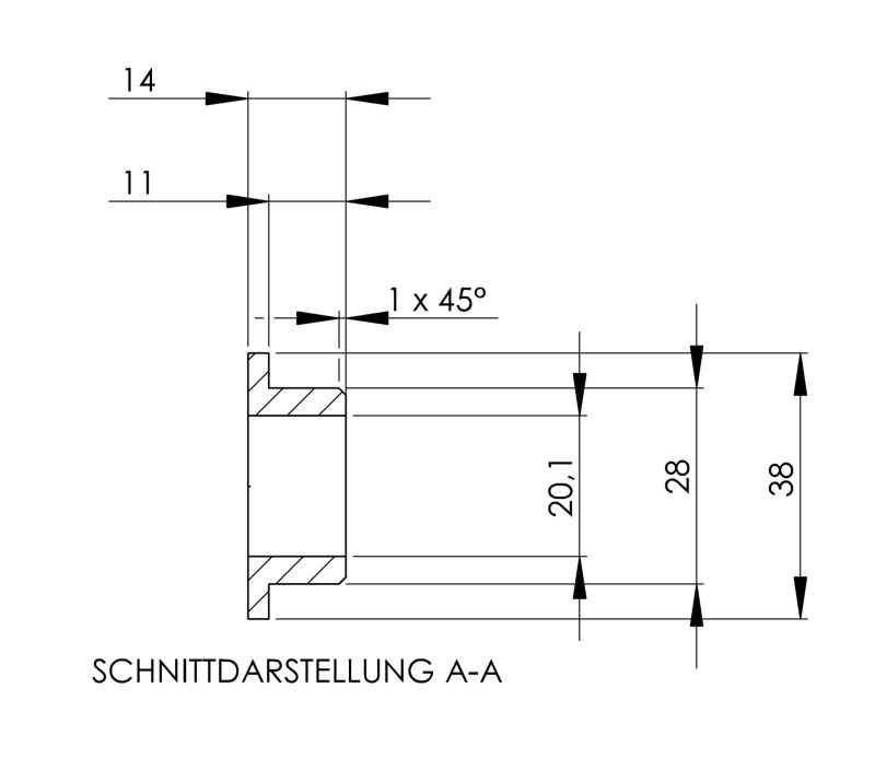 Maße in mm: AußenI/AußenII/Innen/Breite 38 x 28 x 20 x 14