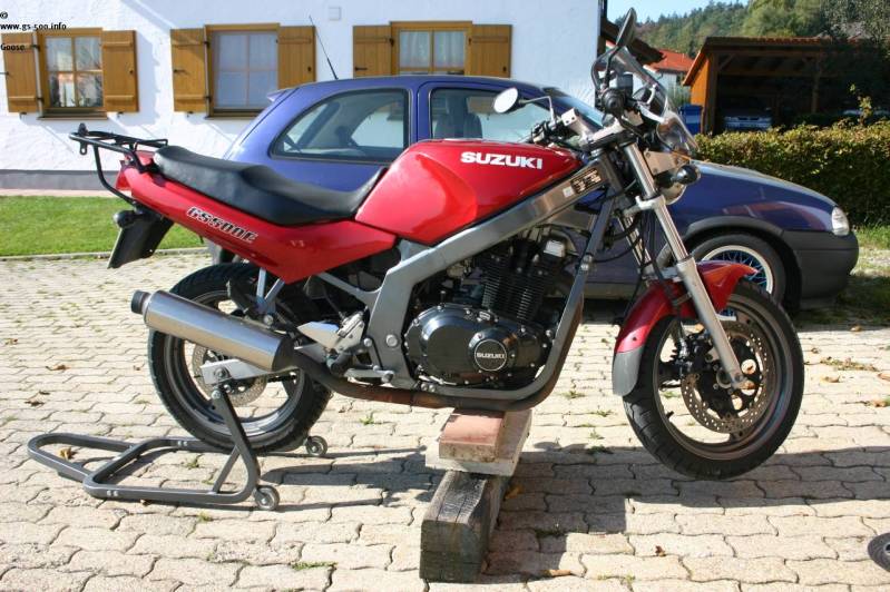 Am einfachsten ist es wenn man die GS auf den Hauptständer stellt, und sie von einer zweiten Person hinten nach unten drückt.
