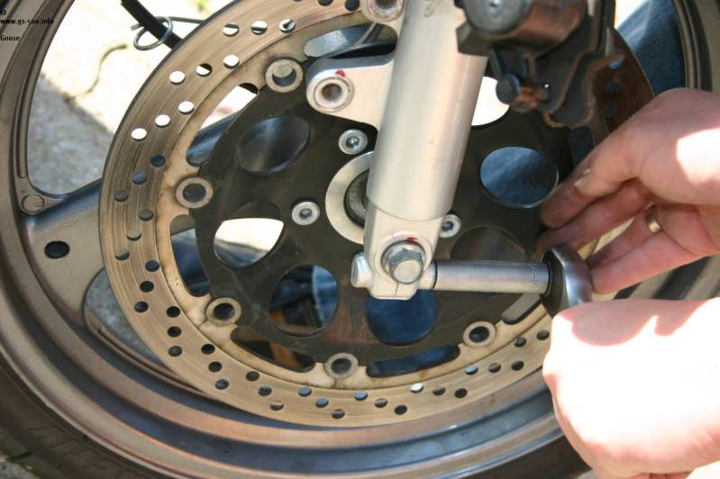 Um das Vorderrad auszubauen, muß der [Bremssattel demontiert](/bremsbelage-vorne-wechseln/) werden.